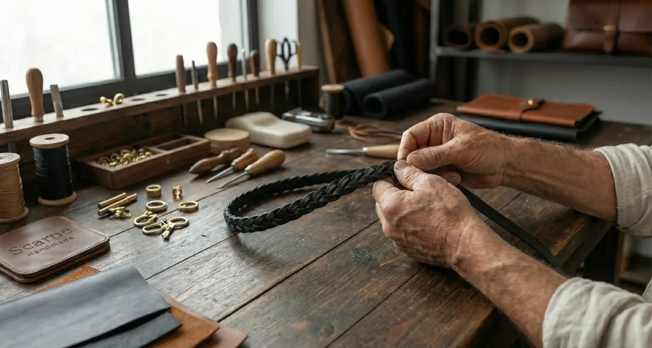 Our signature lies in the hand-braided leather technique, a craft that demands precision, time, and a deep respect for materials.