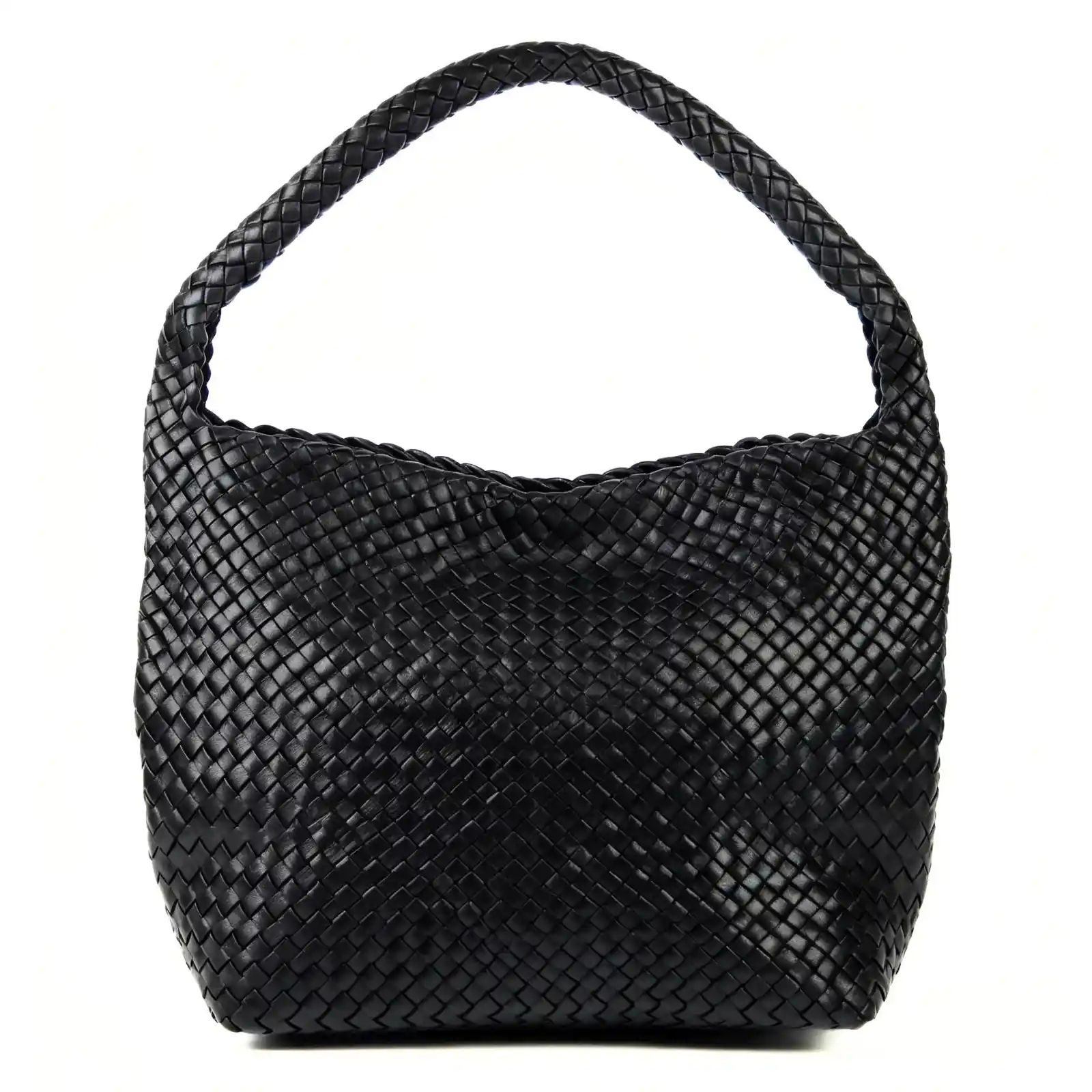Black Aura Luxe is a sleek, sculpted shoulder bag crafted in a deep black woven texture that feels both modern and timeless. The compact, boxy silhouette is softened by rounded edges and an integrated top handle that sits comfortably on the shoulder or in hand, making it ideal for day-to-night wear. The all-over basket-weave pattern adds subtle dimension and a luxury feel, while the minimalist, hardware-free exterior keeps the focus on the material and clean lines. This piece is designed for someone who wants a statement accessory that is understated, versatile, and effortlessly chic.