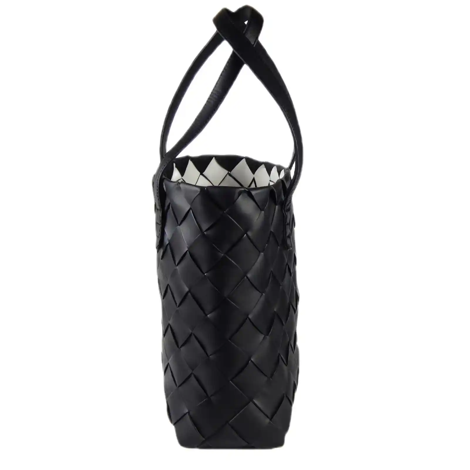 Make a bold statement with this sophisticated Checkers Tote. This piece features a striking oversized Intrecciato pattern, offering a modern, structural take on classic artisanal craftsmanship. Its matte black finish provides a sleek, high-end aesthetic that complements any wardrobe.