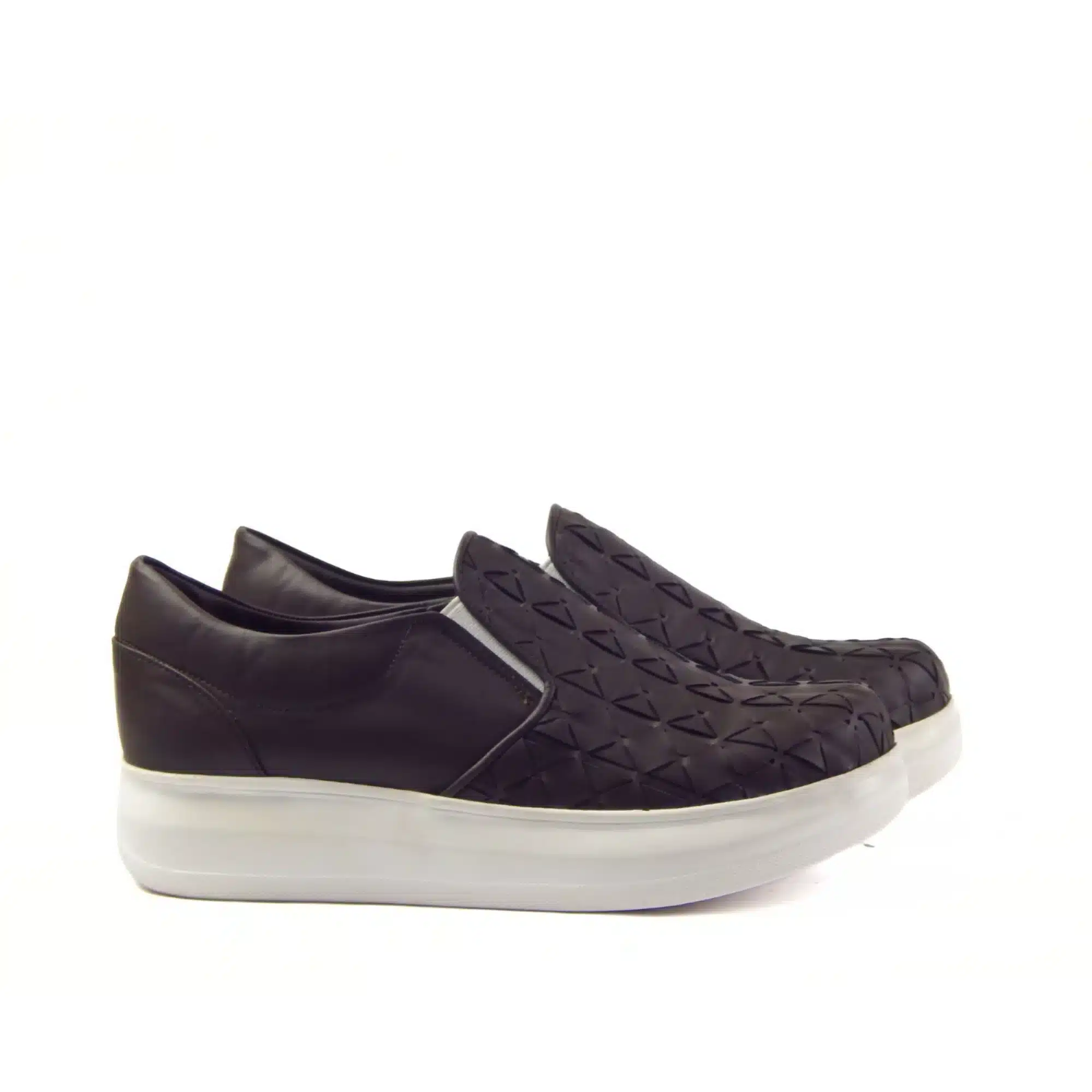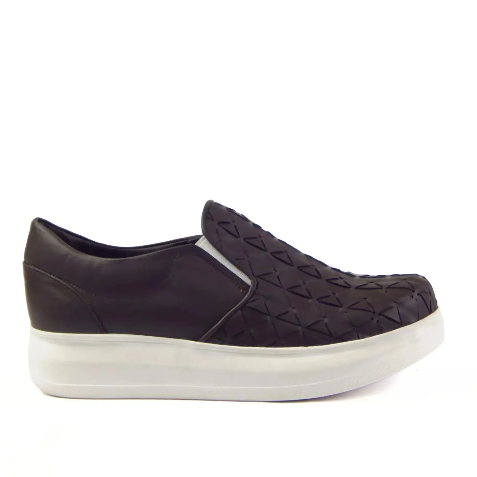 Comfortable leather slip-on shoes with a unique woven design and flexible sole