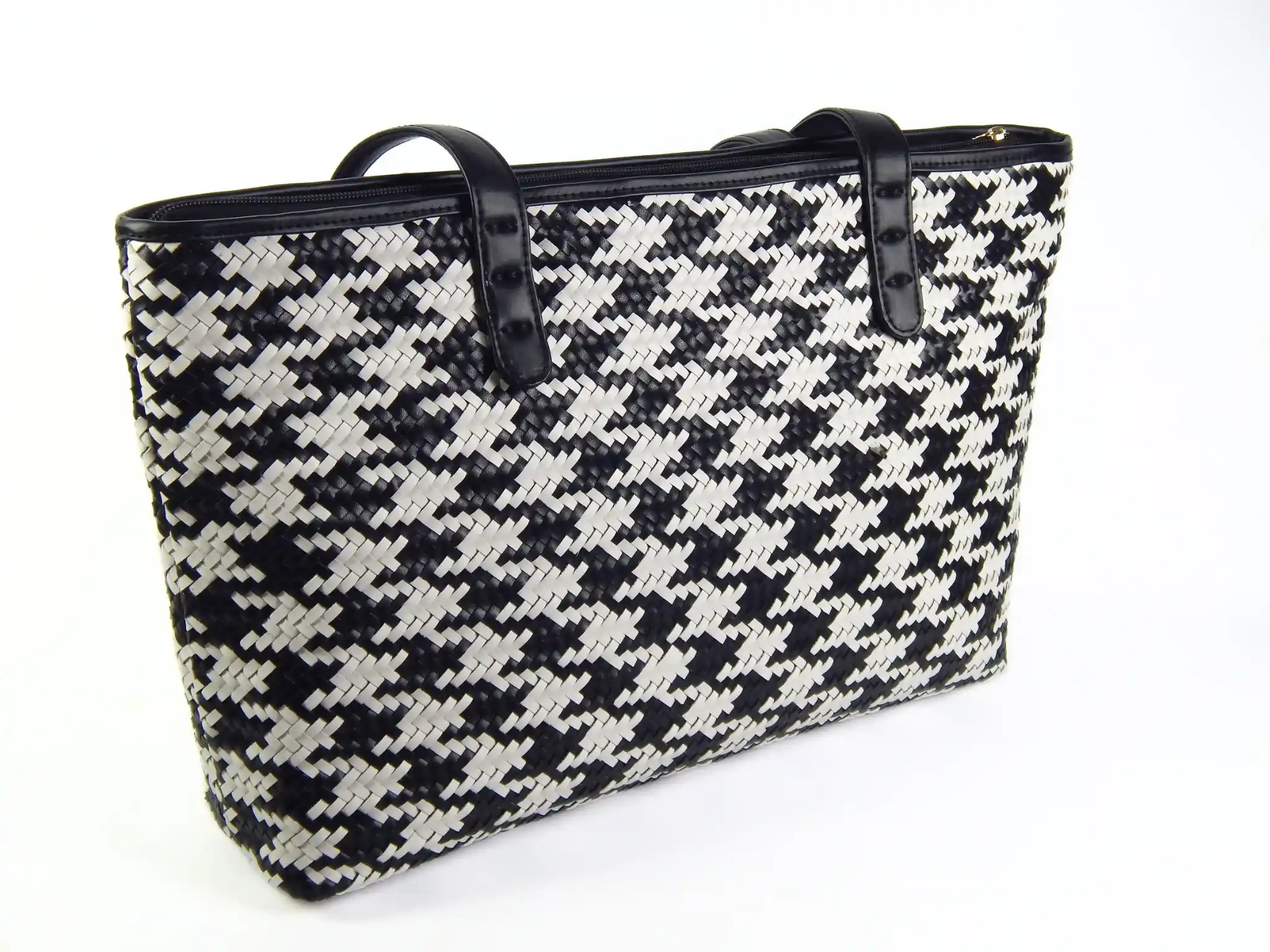 A timeless statement piece featuring the iconic black-and-white houndstooth pattern, designed to elevate everyday style. With its spacious interior and structured silhouette, this bag blends classic elegance with modern practicality—perfect for work, shopping, and daily outings.