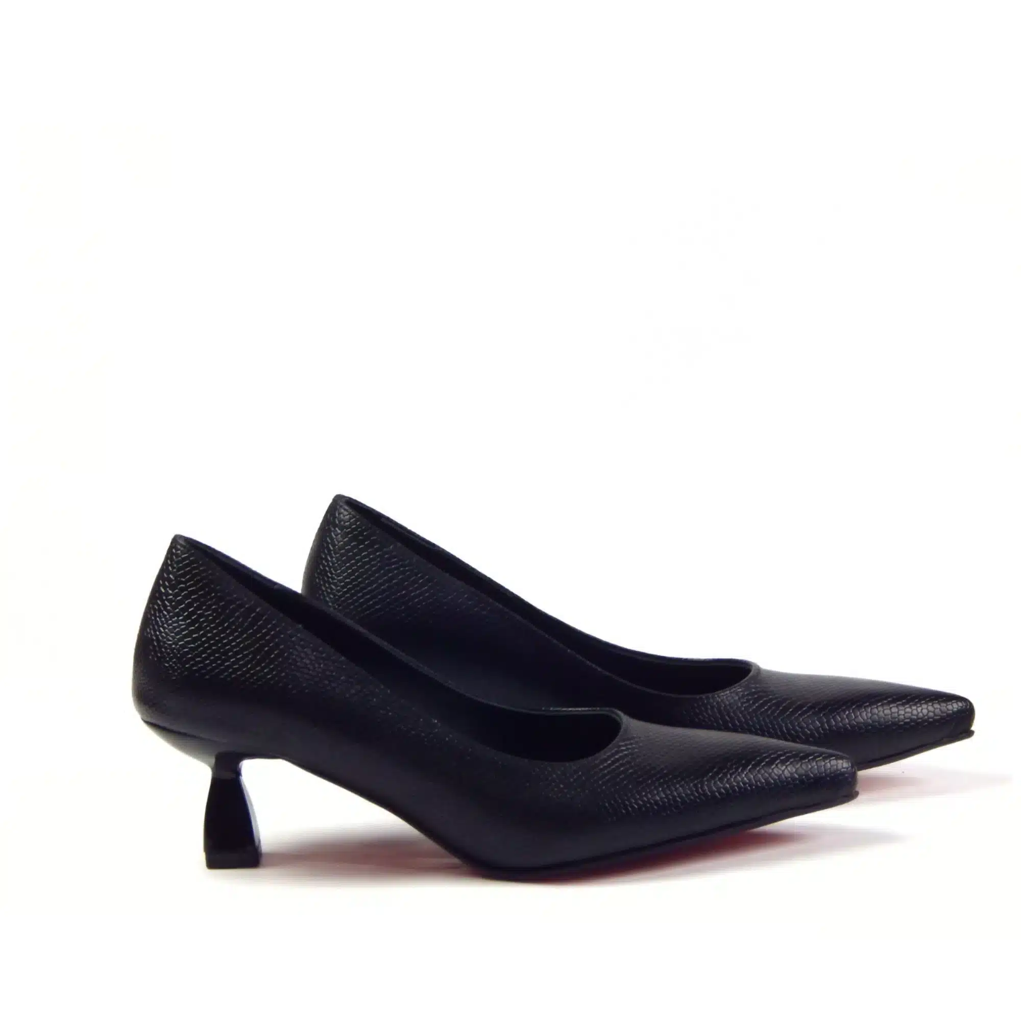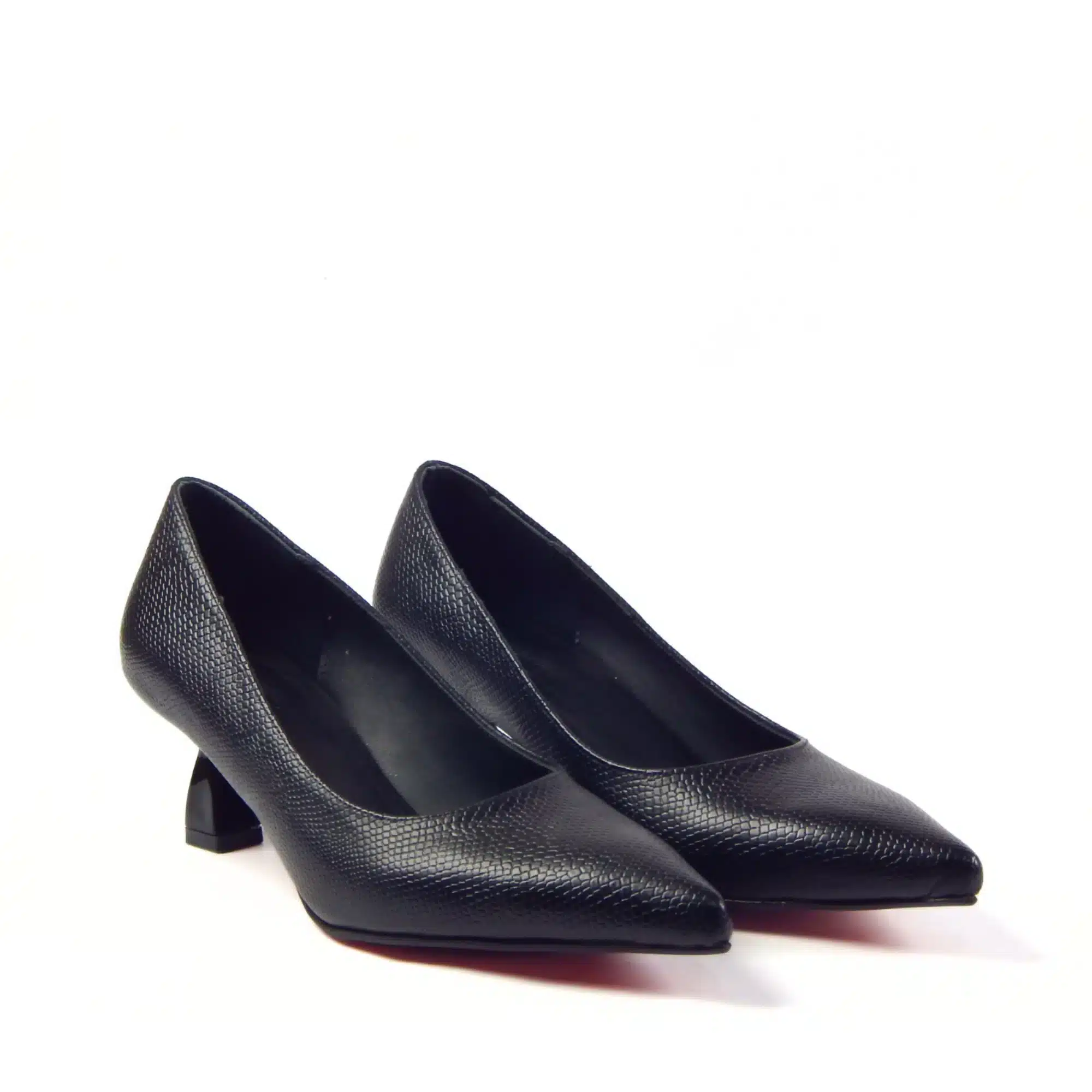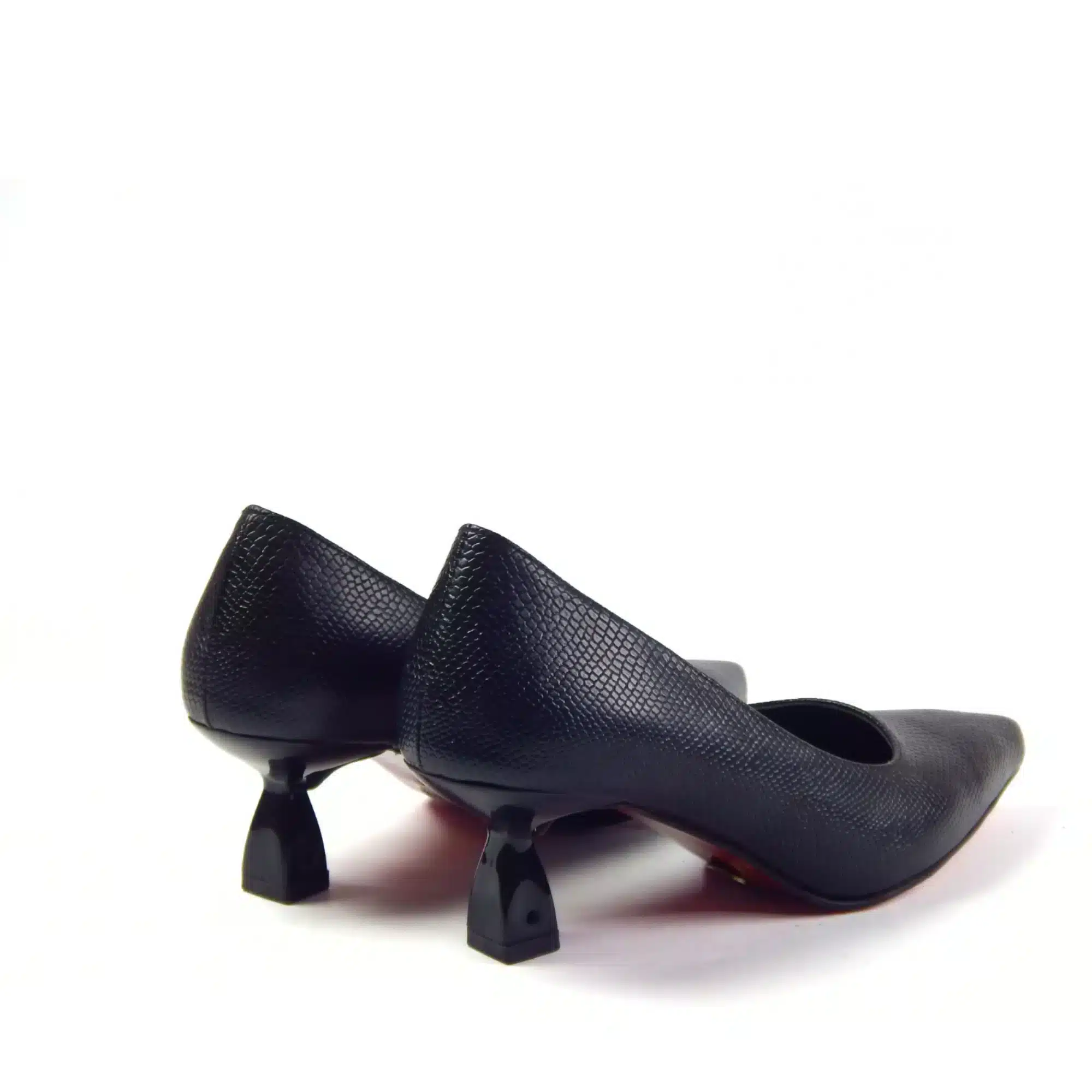 “Elevate your professional look with the Midnight Python Pump. Crafted with a premium textured finish and a sharp pointed-toe silhouette, these pumps redefine modern elegance. The standout feature is the unique architectural block heel, providing sophisticated style paired with all-day stability. A perfect transition piece from office hours to evening events.”