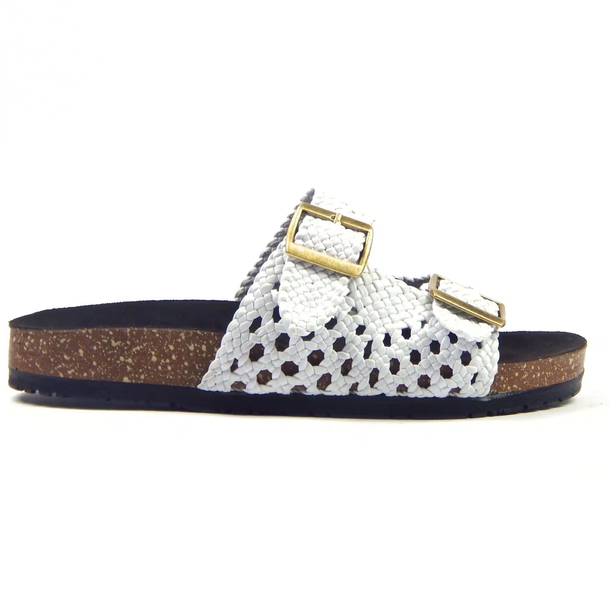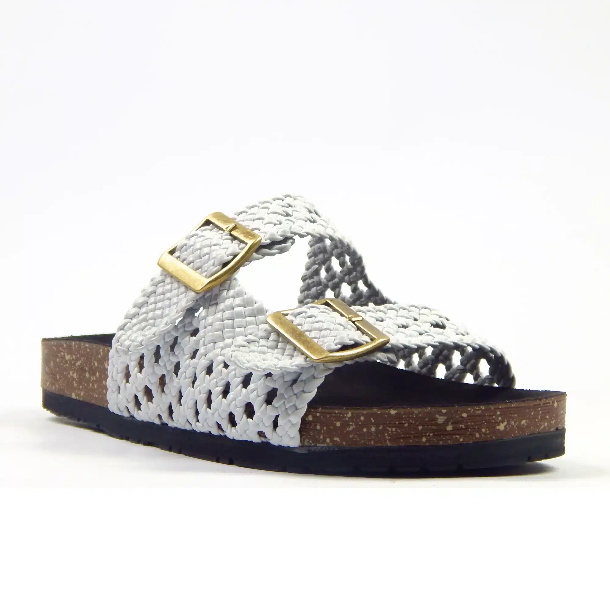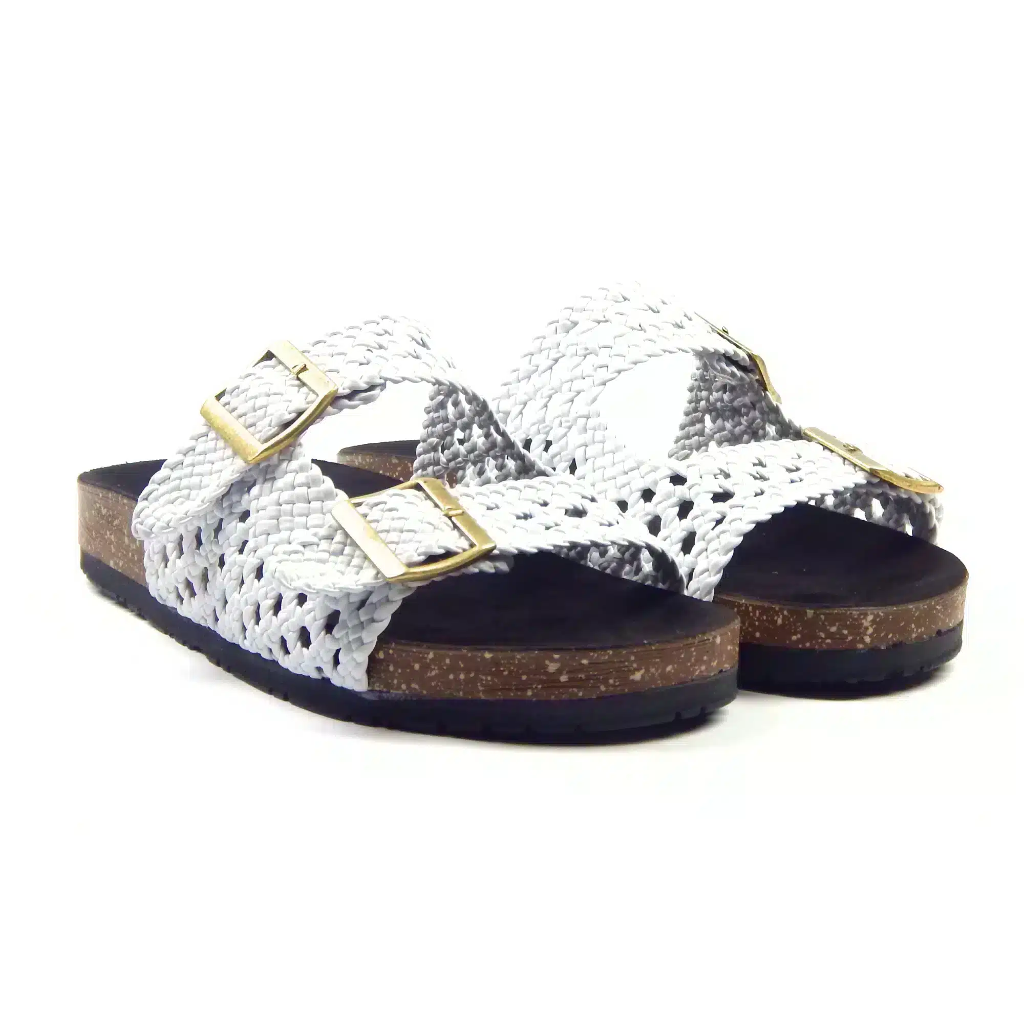 Elevate your everyday comfort with these White Woven Clogs. Crafted with a breathable woven upper and clean white finish, they deliver a fresh, modern look while keeping your feet cool. The adjustable double buckle straps ensure a secure, personalized fit, while the cushioned cork footbed provides lasting comfort and support. Lightweight and easy to slip on, these clogs are perfect for casual wear, warm days, and relaxed outings.